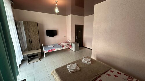 Отдыхали в июле 2025 года. Все понравилось. Отличный персонал. Бассейн всегда чистили. Если что-то необходимо, всегда готовы помочь и предоставить. Отдельное спасибо Тамаре, отзывчивый, добрый, понимающий человек. Всем советую. От моря как все пишут 25 мин далеко идти полная ЧУШЬ. Идти 10 мин. Все находится рядом. Парковочных мест достаточно. Езжайте и наслаждайтесь !
